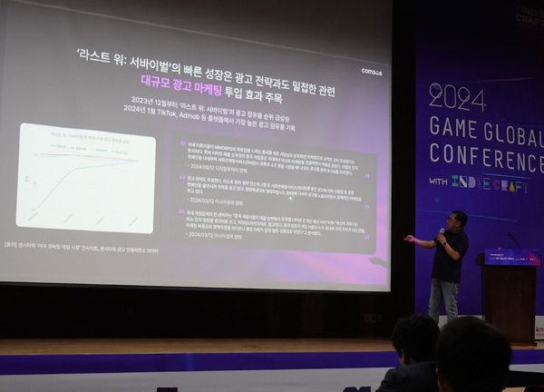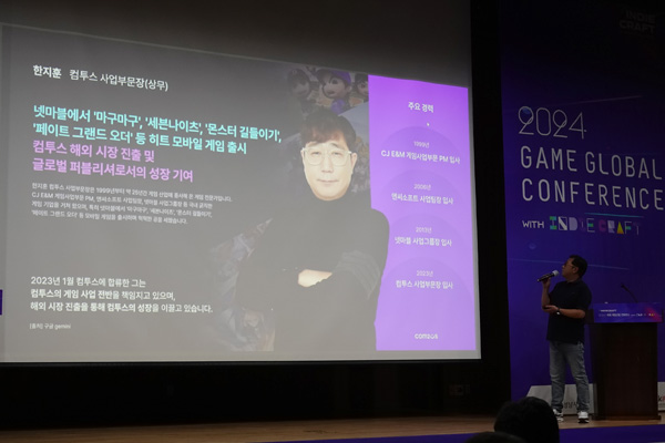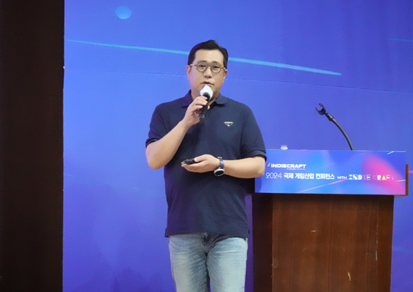 컴투스의 한지훈 게임사업 부문장이 '2024 인디 크래프트'의 '국제 게임산업 컨퍼런스' 둘째 날 연사로 나서 자신이 가진 노하우와 시장 분석 시각을 참석자들에게 공유했다.