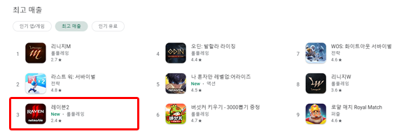 넷마블몬스터가 개발하고, 넷마블에서 서비스하는 '레이븐2'가 구글 플레이스토어 매출 3위권으로 올라섰다. 좋은 출발과 함께 장기 서비스 발판 마련에 성공해 앞으로 기대가 더욱 높아지고 있다.