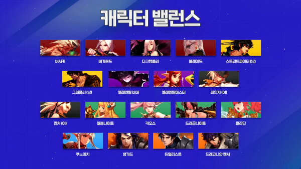 캐릭터 밸런스에 관련된 내용은 김윤희 콘텐츠 디렉터가 발표했다. 먼저 6월부터 8월까지 18개 캐릭터에 대한 밸런스 패치가 진행될 예정이다. 캐릭터 성능 간극 완화를 위해 노력한다는 계획이다.