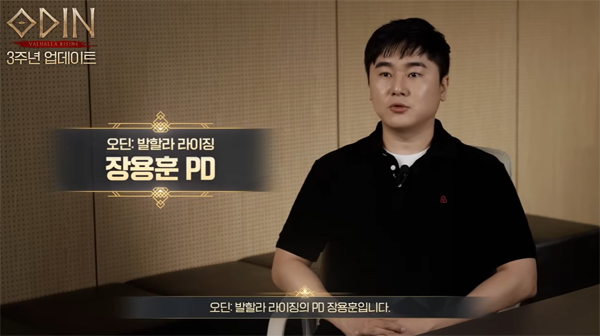 이후 장용훈 오딘 PD는, 영상에 직접 등장해 감사의 말을 전했다. 그는 "오딘이 3주년을 맞이했다. 긴 시간 동안 게임이 사랑 받을 수 있었던 것은 유저 덕분이었다"며 "함께 해준 유저들에게 감사하며, 3주년을 진심으로 축하한다"고 말했다.