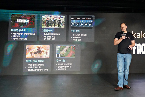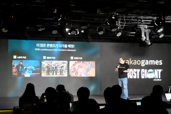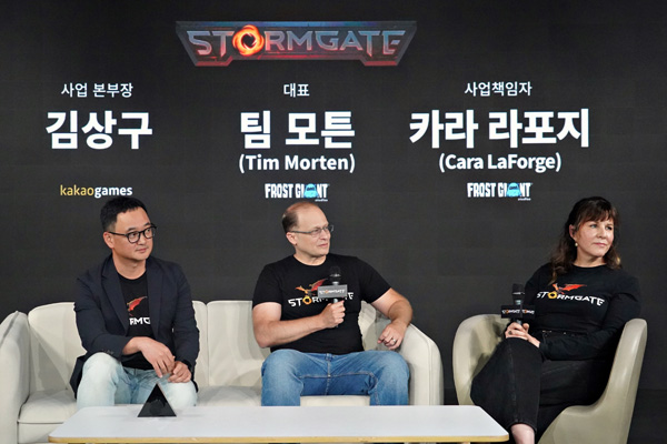 18일 서울 강남에서 카카오게임즈는 미디어 간담회를 열고, 신작 '스톰게이트'에 대한 세부 내용들을 소개했다. 현장에는 카카오게임즈의 관계자들은 물론, 개발사 프로스트 자이언트의 팀 모튼 대표와 카라 라포지 사업 책임자도 참석해 다양한 게임의 특징들을 공개했다.