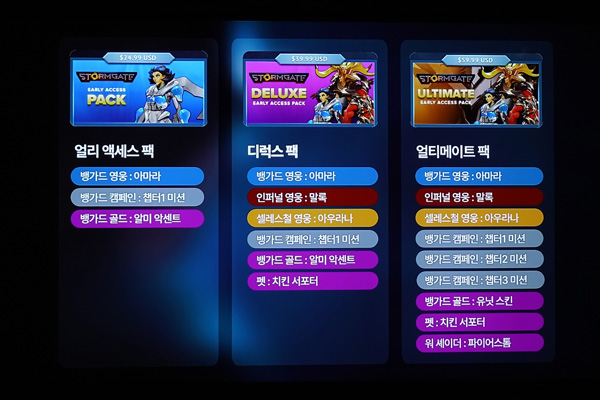 '스톰게이트'는 실시간 전략 시뮬레이션(RTS) 기반 게임으로, 협동 모드와 영웅 기반 3대3 모드 등 새로운 게임플레이 요소들을 넣은 것이 특징이다. 차세대 RTS, 누구나 쉬운 게임 플레이를 지향하며, 다양한 인게임 에디터 등도 추가해 나갈 계획이다.
