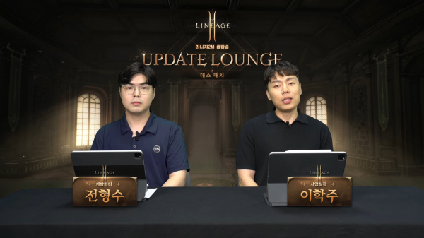 엔씨소프트는 18일 온라인 방송 ‘업데이트 라운지’를 통해 오는 26일에 진행될 대규모 업데이트 콘텐츠를 공개했다. 여기에는 ‘리니지2M’의 전형수 개발PD와 이학주 사업실장이 참석했다.