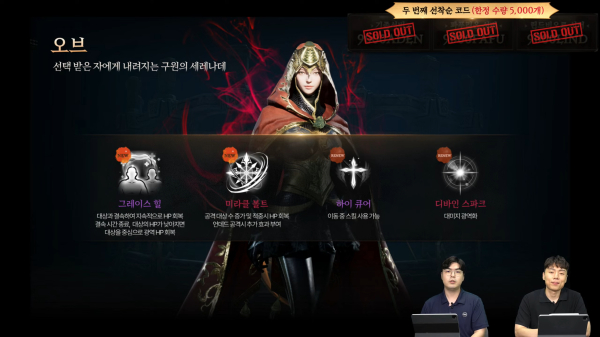 오브 클래스는 신규 스킬로 그레이스 힐과 미라클 볼트가 추가된다. 그레이스 힐은 대상과 결속해 지속적으로 HP를 회복하는 스킬이다. 대상의 HP가 낮아지면, 대상을 중심으로 광역 HP 회복도 이뤄진다.
