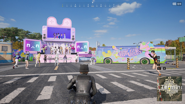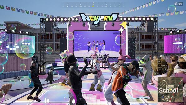 태이고 맵은 좀 더 특별한 구성으로 뉴진스 콜라보레이션을 준비했다. 스쿨 지역 운동장에는 뉴진스 무대가 상시로 배치되고, 주요 거점 건물마다 쥬크박스를 설치해 게임 유저는 물론 팬들까지도 함께 즐길 수 있는 공간을 마련했다.