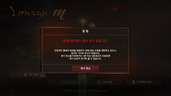 6월 19일 20시 리부트 월드 오픈 직후 많은 이용자가 몰리며 20개에 달하는 모든 신서버에서 캐릭터 생성이 제한되고 대기열이 발생해 수용인원 증설을 검토하고 있다. ‘EPISODE. ZERO’ 업데이트 후 기존 레거시 월드도 활성화되며 리니지M 일간 사용자 수(DAU)가 대폭 증가했다.