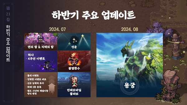 8월에는 원작에서도 큰 사랑을 받은 ‘용궁’ 지역을 선보인다. 아래하늘 세계에 존재하는 원시 바다로서, 청의태자와 관련된 다양한 에피소드를 즐길 수 있다. 또한, ‘용궁’만의 특색을 담은 전설 등급의 보조 장비, 지역 전설 갑옷 등 여러 신규 장비도 추가된다.