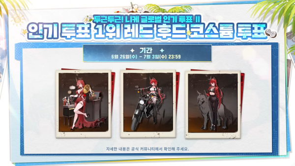 기대를 모은 여름 신규 코스튬 3종은 ‘바이퍼 샤인 오브 러브’, ‘메이든 언더 더 썬’, ‘길티 디스빌리프 웨이브’로 선정됐다. 여름을 겨냥한 신규 수영복 코스튬으로서, 과감한 의상을 지휘관들의 눈길을 끌었다.