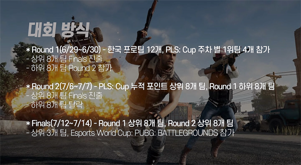 한국 지역은 총 3장의 e스포츠 월드컵 배틀그라운드 종목 진출권을 배정받아 29일부터 티켓 주인공을 확정하기 위한 여정을 시작한다. 기존 프로팀은 물론 하위 리그인 PLS컵 결과를 바탕으로 경기에 참여할 아마추어 팀을 확정했다.