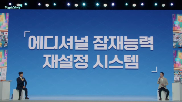 당시 ‘메이플스토리’ 김창섭 총괄 디렉터는 “게임 내 경제 상황의 변화가 매우 큰 상황에서 이에 적절히 대응하고자 상반기 동안 많은 콘텐츠를 추가하고, 메소 및 메이플포인트의 가치 유지에 심혈을 기울였다. 유저와의 약속을 지키는 것이 신뢰 회복에 가장 필요한 작업이라고 생각했던 만큼 6월 업데이트에서 에디셔널 잠재능력 재설정 시스템을 정식 적용하기로 결정했다”고 밝힌 바 있다.