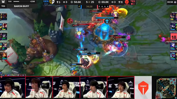 초반 젠지의 분위기는 좋았다. 탑에서의 퍼스트 블러드와 바텀에서의 2킬을 바탕으로, 좋은 분위기를 만들었다. TES는 이에 밀리지 않고 킬을 따라잡으며, 드래곤과 주요 오브젝트를 수급하는 등 만만치 않은 경기력을 보여줬다.