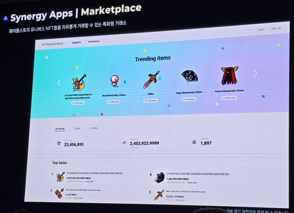 다음으로 유저들이 NFT를 거래하는 특화형 거래소인 ‘마켓플레이스’가 있다, 보기 쉽고 게임스럽게 표현할 수 있도록 준비 중인 거래소로, 원작을 해본 유저라면 금방 적응할 수 있는 디자인으로 구축되고 있다. 보통은 게임 내 서버 단위로 거래소가 있는데, ‘메이플스토리 유니버스’에는 별도로 존재해서 서버의 벽을 넘어 자유로운 거래가 가능하다.