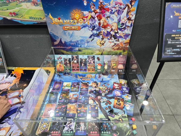 그 아래에는 최근 출시된 '세나키' 보드게임이 전시되어 있어서, 여러가지 구성품들을 실제로 확인할 수 있었다.