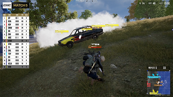 에란겔에서 열린 매치 5는 종반까지 많은 팀들이 풀스쿼드로 안정적인 운영을 펼쳤다. 그만큼 여러 팀들에게 치킨의 기회가 가능했던 경기였다.