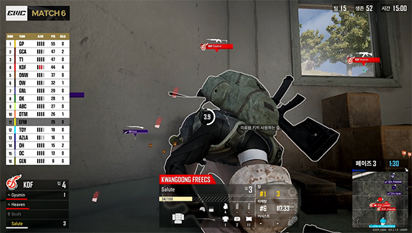 다른 팀보다 많은 팀원이 생존해 쉽게 승리할 것으로 예상됐지만, 단 2명 남은 GNL 이스포츠가 끈질기게 살아남아 치킨에 욕심을 냈다. 피 말린 마지막 승부에서는 1대 1 싸움으로 게임코치 아카데미가 어렵게 승리하며 한숨을 돌렸다.