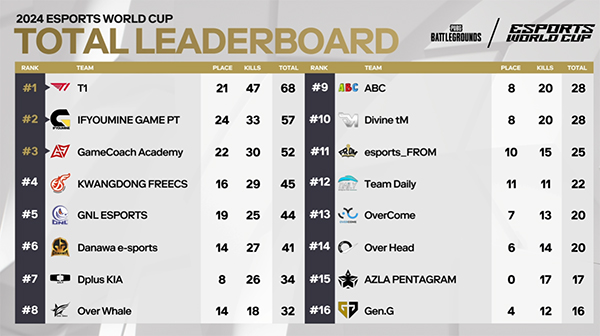 e스포츠 월드컵을 향한 배틀그라운드 한국팀의 최종 선발전이 시작된 가운데, T1이 뛰어난 피지컬을 앞세워 선발전 결승 1일 차에서 1위에 등극했다.
