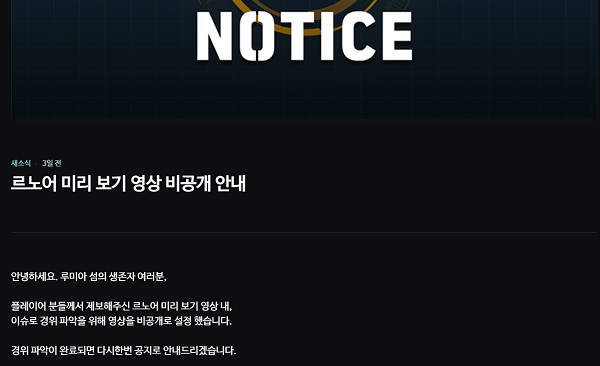 이 내용이 지적되자 님블뉴런 측은 영상 공개 30분 만에 즉각 영상을 비공개 처리하고, 경위를 파악한 뒤 공지로 안내하겠다는 입장을 게시했다.