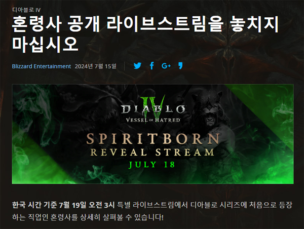 블리자드는 '증오의 그릇'을 기다리는 유저들을 위해 먼저 신규 직업인 혼령사의 세부 내용을 공개하는 자리를 마련했다. 한국 시간으로 오는 7월 19일 오전 3시, 공식 라이브 스트림을 통해 플레이 모습 등이 공개되는 것이다.