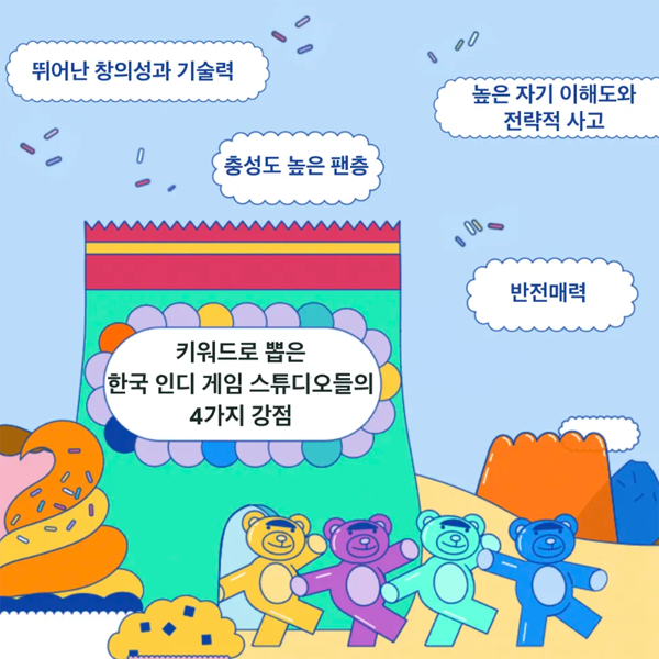 IGA를 이끄는 마커스 푼(Marcus Foon) 인디게임 액셀러레이터 & 커뮤니티 글로벌 총괄은 2024 IGA 졸업식에서 관련 인사이트를 공유했다. 뛰어난 창의성과 기술력, 충성도 높은 팬층, 높은 자기 이해도와 전략적 사고, 반전 매력 등 4가지 강점을 한국 인디 게임 스튜디오의 핵심 장점으로 선정해 관련된 이야기들을 풀어 나갔다.