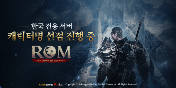 레드랩게임즈(대표 신현근)는 자사가 개발하고 카카오게임즈(대표 한상우)와 함께 글로벌 동시 서비스를 진행중인 정통 하드코어 MMORPG ‘롬(ROM: Remember Of Majesty)(이하 롬)’의 한국 전용 신규서버 캐릭터명 선점 이벤트를 진행한다고 밝혔다.
