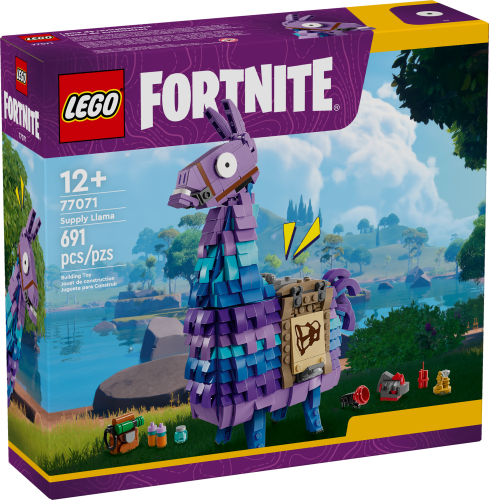 첫 번째 <레고 포트나이트> 세트는 ‘보급품 라마’로, 691개의 부품으로 구성되어 있고, ‘보급품 라마’ 외에도 홀짝 주스, 루비 원석, 배낭, 다이너마이트 등 귀여운 액세서리가 포함되어 있다.