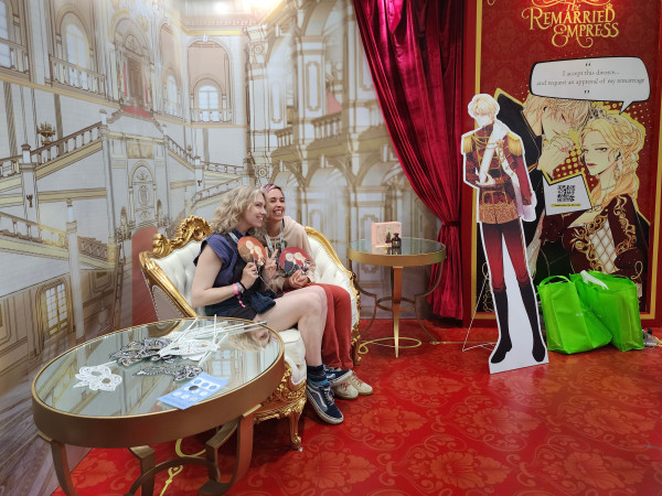전시부스는 처음 미국 한류 팬들과 만나는 자리인 만큼, ‘Nice to meet Toon’이라는 슬로건 아래 다양한 콘텐츠를 전시하고 체험할 수 있도록 구성했다. 특히 현지 인기 웹툰 <재혼황후>의 배경 중 하나인 연회장을 재현해 이목을 집중시켰다.