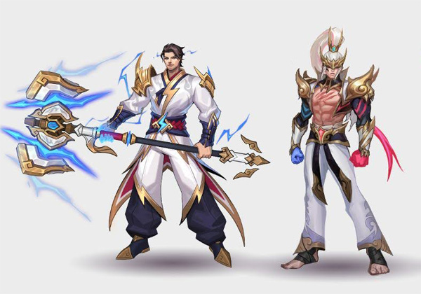 먼저, T1의 롤드컵 우승 스킨은 사방신에서 영감을 받아 수호신 콘셉트로 기반을 만들었다. 흰색과 금색 기반의 바탕을 가져가면서도 홍색과 청색을 가미해 힘의 원천을 설정했다. 우승 당시 부각됐었던 왕의 귀환, 고귀한, 유산, 한국적인 특색 등을 가미해 밝은 느낌의 색상을 가져간 것이 특징이다.