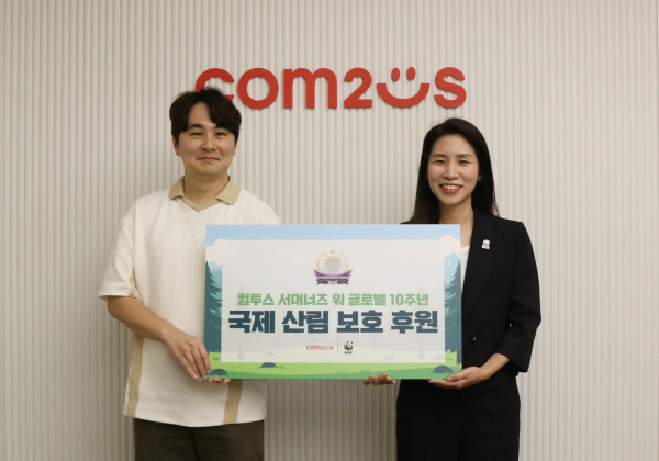 - 컴투스(대표 남재관)는 ‘서머너즈 워: 천공의 아레나(이하 서머너즈 워)’의 글로벌 사회공헌 캠페인을 성황리에 마무리하고 WWF(세계자연기금)에 국제 산림 보호 활동 기금을 후원했다. 이번 캠페인은 ‘서머너즈 워’ 글로벌 서비스 10주년을 기념하고 세계 기후 위기 대응에 동참하기 위해 진행됐다. 컴투스는 2014년부터 매년 ‘서머너즈 워’와 연계한 글로벌 사회공헌 캠페인을 전개해오고 있으며, 특히 올해는 유저들과 임직원이 모두 함께할 수 있는 프로그램을 구성해 10주년의 의미를 더욱 빛냈다.