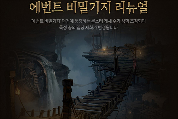 이어 '에번트 비밀기지'가 지난 7월 24일 개편됐다. 1층과 2층의 몬스터 밸런스가 조정되고, 등장 개체 수도 상향됐다. 2층의 입장 재화는 아데나로 변경되어 더 많은 유저들이 입장할 수 있게 됐다.