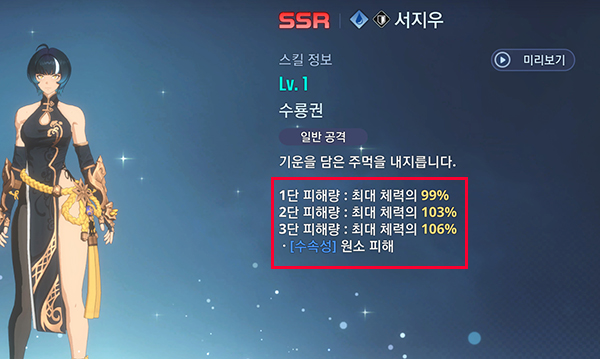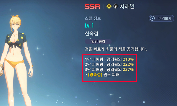 특히, 상어 물총은 단순한 이벤트성 무기가 아닌 돌파 및 진화가 가능해 전투에서 높은 효과를 발휘한다. 게다가 진화를 거치면 새로운 스탯인 정밀도를 획득하고, 최대 진화에 성공하면 기본 능력인 'QTE/일반 스킬 피해량 증가' 외에 공격력, 방어력 등의 스탯 증가까지 얻게 된다.