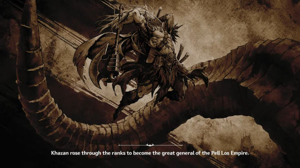 야만족 출신인 '카잔'은 출신으로 인해 차별을 받기도 했지만, 타고난 기질과 육체 덕분에 펠 로스 대장군 위치까지 등극한 인물이다. 야만족 출신답게 '카잔'의 전투 방식은 과감하고, 강력하며, 압도적인 제압감을 강조했다. 이런 성향은 게임플레이에서도 그대로 드러난다.