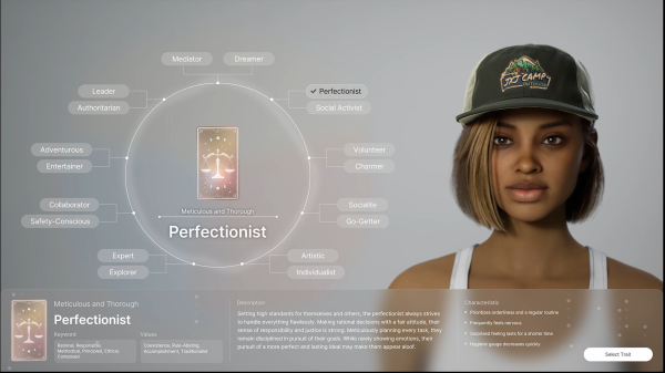 그리고 조이의 성격을 결정하는 기질 화면이 더 세련되게 바뀌었음이 확인됐다. 이전에는 다양한 선택을 통해 결과가 나왔다면, 이제는 명확하게 총 18개의 성향을 선택할 수 있게 된 것으로 보인다.