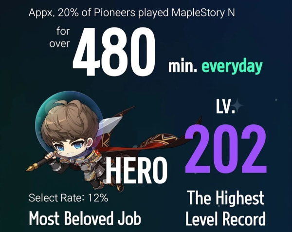테스트 기간 중 20%의 유저는 매일 480분 이상 게임을 플레이했으며, 10일간 가장 높은 유저의 레벨은 202였다. 가장 오래 플레이한 유저의 기록은 12,298분(8일 12시간 58분)이었으며, 전체 유저의 12%가 선택한 캐릭터의 직업은 전사인 히어로였다. 그리고 기간 동안 보스인 자쿰의 토벌 횟수는 1,192회였으며, 테스트 기간 동안 거래는 195,046건이 이뤄졌다.
