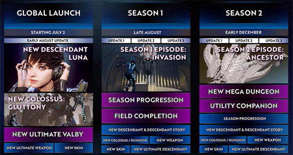 현재 '퍼스트 디센던트' 개발진은 올해 진행될 시즌1과 시즌2에 대한 업데이트를 동시에 준비하면서 라이브 서비스 개선에 힘쓰고 있다. 8월 말 출시 직후부터 시작된 프리시즌이 종료되면 시즌1이 시작될 예정으로, 시즌은 3개월 동안 이어져 연말에는 시즌2까지 공개할 계획이다.