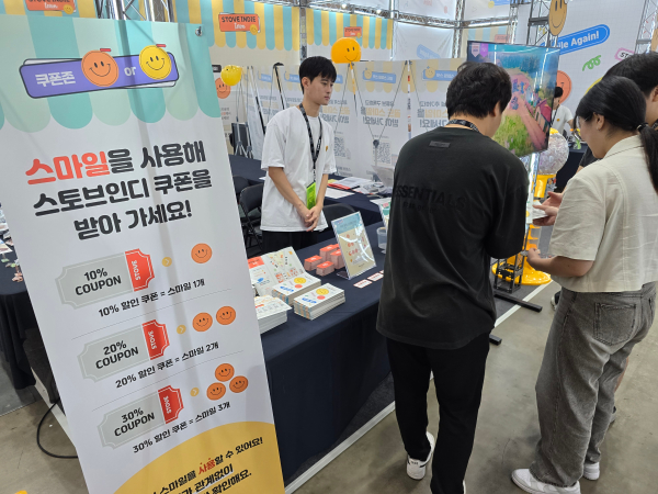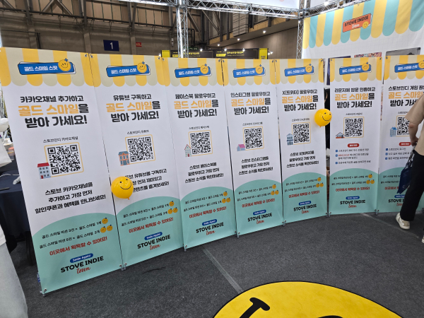 마지막으로 관람객들을 대상으로 한 스토브인디 타운홀 부스다. 행사장에 마련된 타운홀 부스의 주제는 ‘스마일 어게인!’이다. 작년에 진행된 스마일 이벤트를 업그레이드해서 진행하는 부분을 표현한 것으로 보인다.