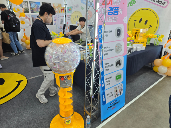 이렇게 획득한 스마일 재화는 스토브인디 부스에서 활용할 수 있다. 부스에는 스토브인디에 입점한 게임들의 다양한 굿즈가 마련되어 있으며, 각 상품들마다 필요한 스마일의 개수가 표시되어 있었다. 따라서 좋은 굿즈를 원한다면 더 많은 스마일이 필요할 수 있다.