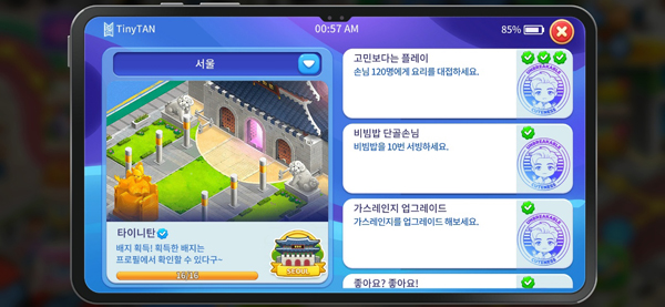 타이니탄은 유저들에게 다양한 퀘스트를 안겨주면서 플레이에 도움을 준다. 또한 플레이 결과로 얻을 수 있는 포토 카드를 통해 수집 욕구를 자극시키며 지속적인 게임 플레이를 유도하고 활력을 불어넣으면서 다른 요리 시뮬레이션 게임들과 다른 확실한 차별점을 가져갔다.