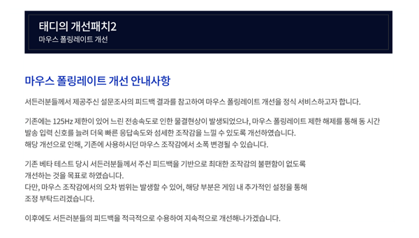 ■ 끊임없는 인게임 업데이트, 이번에는 마우스 정확도 개선