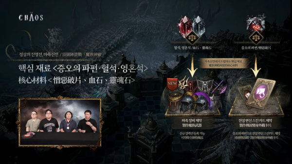 마족신전에서 드랍하는 핵심 재료로는 증오의 파편이 있다. 이를 통해 전설 변신 스킨 카드를 제작할 수 있다. 혈석과 영혼석으로는 마족 장비를 제작할 수 있다. 오는 21일 마족신전이 먼저 업데이트되고, 28일에는 진영전이 업데이트된다.
