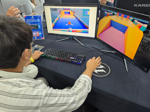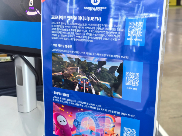 그리고 게임을 해본 뒤 개발에 관심이 있는 관람객에게는, UEFN에서 각 템플릿을 이용해 쉽게 게임의 요소를 제작할 수 있는 체험을 진행 중이다. 플레이 위주로 구성한 만큼 좋은 반응을 보이고 있다고 에픽게임즈 측은 밝혔다.
