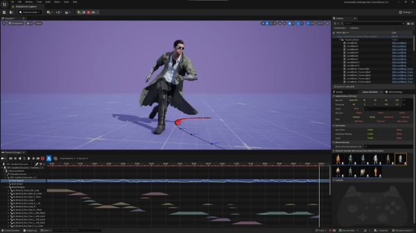 언리얼 엔진은 500여개의 애니메이션 샘플을 제공 중이고, 자연스로운 애니메이션 제작을 위해 몇 개를 선택하면 스스로 블렌딩되어 보여준다. 원래는 모션 캡처를 쓰고 데이터를 구축해 자연스럽게 적용하려면 굉장히 많은 예산과 시간이 소요되는데, 언리얼 엔진은 그런 과정 없이 자신만의 게임 창작에 열중할 수 있도록 지원을 하고 있다.