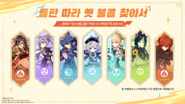 먼저 5성 캐릭터 무료 획득이다. 업데이트 후 오는 10월 9일까지 게임에 접속 시 5성 상시 캐릭터 1명을 무료로 획득할 수 있다. 호요버스 측은 앞으로 돌아오는 N주년 때마다 5성 상시 캐릭터를 지급할 계획이며, 그때마다 캐릭터의 선택의 폭도 넓혀지게 된다.