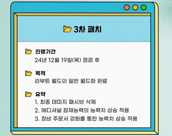 넥슨은 최근 공지를 통해 리부트 월드의 일반 월드 변경 과정에서 기존에 알려진 일부 변경점에서 확실한 기준을 공개했다. 지난 8월 9일 ‘메이플스토리’의 김창섭 디렉터는 리부트 월드의 플레이 경험을 개선하기 위해 리부트 월드를 일반 월드와 동일한 환경으로 단계적으로 변경할 계획이라고 밝힌 바 있다.