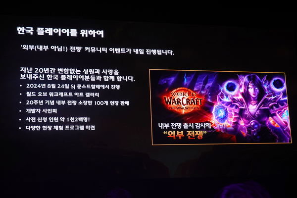 23일 오후, 확장팩 출시에 앞서 블리자드는 '내부전쟁'과 관련된 세부 이야기들을 전했다. 새롭게 도입되는 콘텐츠와 더불어 10번째 확장팩을 출시하기까지의 여정을 비롯해 앞으로 계획과 '워크래프트' IP가 그리는 미래 등을 공유했다.