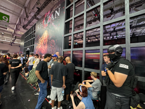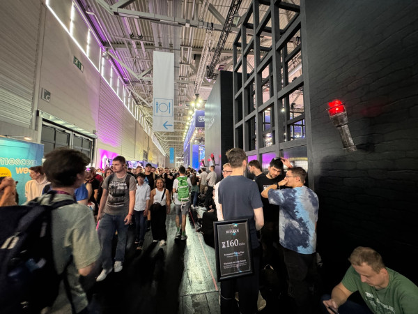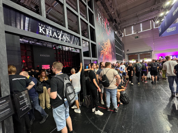 넥슨의 기대작 '퍼스트 버서커: 카잔’ 게임스컴 2024 현장, 게임을 체험하려는 유럽 게이머들이 줄을 서며 인산인해를 이루고 있다.