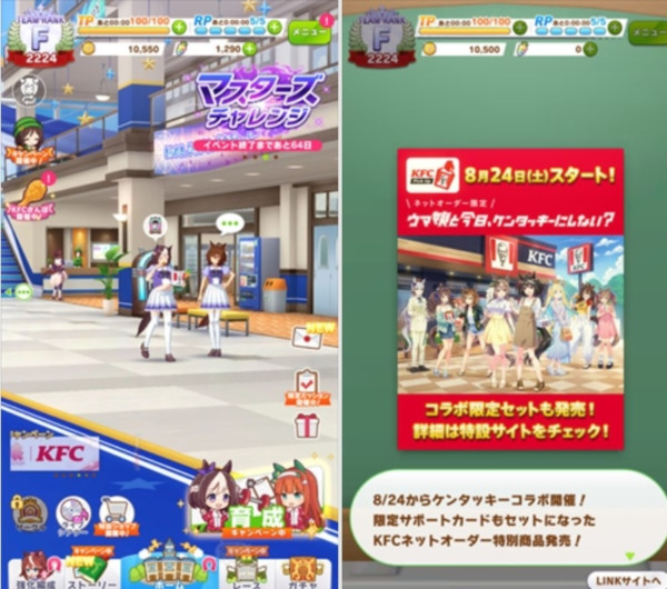 사이게임즈의 크로스 미디어 콘텐츠 '우마무스메 프리티 더비'(iOS, Android, PC)가 8월 24일부터 '켄터키 프라이드 치킨'(KFC) 과 콜래버레이션을 시작한다.