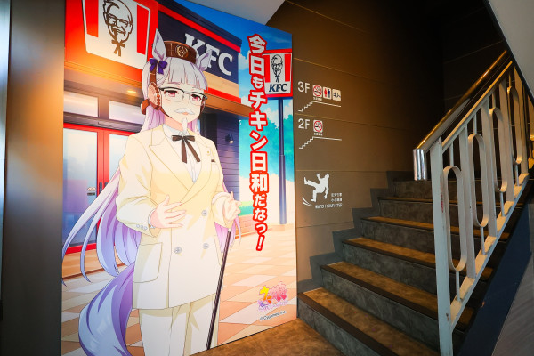 또한, 이 콜라보레이션을 기념하기 위해, 우마무스메 테마로 꾸며진 '켄터키 프라이드 치킨 이케부쿠로 서쪽 출구점'을 오픈했다. 이번 콜라보레이션은 8월 24일부터 9월 13일까지 진행된다. 3층 건물의 모든 층을 사용하는 호화로운 건물이다.
