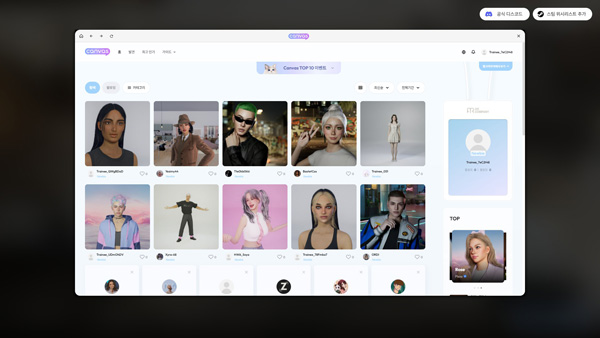 '인조이: 캐릭터 스튜디오'는 체험으로만 끝나지 않는다. 향후 '인조이'의 중추적인 역할을 담당할 캔버스 시스템에 접속해 내가 제작한 캐릭터를 공유하고 남들이 제작한 창작물을 살펴보면서 교류를 펼칠 수 있다.
