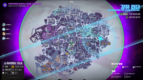 팀원이 순차적으로 캐릭터를 선택할 때, 강하 리더를 다른 팀원에게 넘길 수도 있다. 강하 리더가 된 팀원은 탑승체가 이동할 때 강하 위치를 선택할 수 있다. 강하 위치는 정해진 경로에서 벗어날 순 없다. 탑승체가 강하 위치에 접근하면 강하 포드를 통해 팀원 전체가 강하한다.