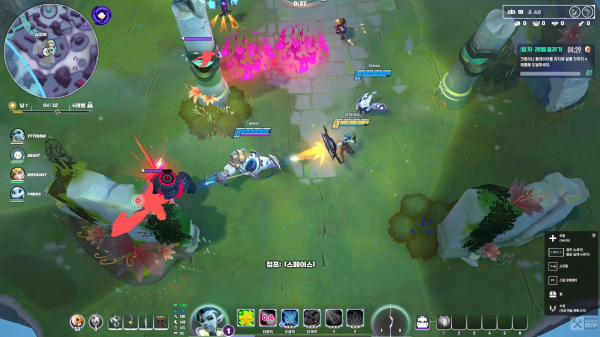 이렇게 ‘슈퍼바이브’는 캐릭터를 성장시키고 획득한 아이템을 이용해 마지막까지 살아남는 팀이 최종 승리를 거두는 방식으로 진행된다. 그러다 보니 이 게임은 ‘리그 오브 레전드’나 ‘배틀그라운드’, ‘에이펙스 레전드’ 등 여러 장르가 혼합되어 있다는 느낌이 들었다. 배틀로얄 MOBA 게임이라고 할까?